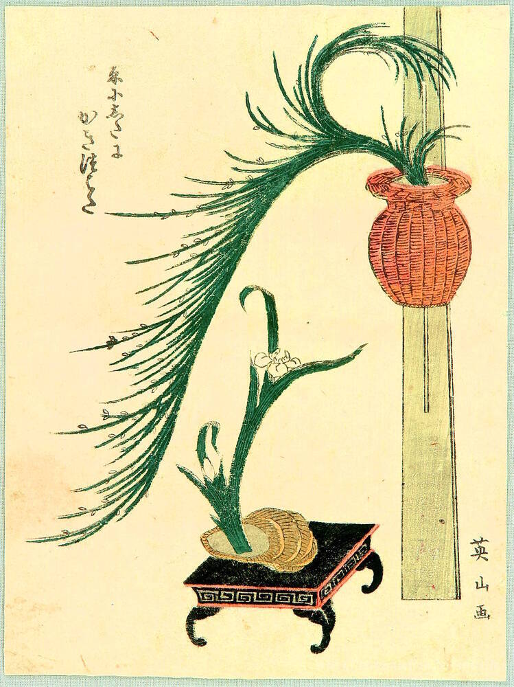 Nous vous proposons une reproduction artisanale sur toile du célèbre tableau 'Arrangement floral' de Keisai Eisen, provenant du Musée de la Reproduction.
