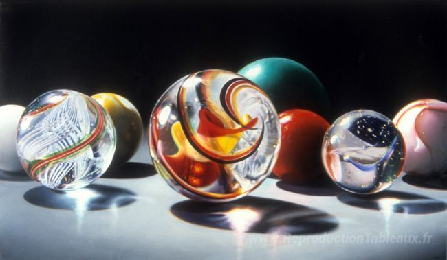 Nous vous proposons une reproduction artisanale sur toile du célèbre tableau 'Billes je' de Charles Bell, provenant du Musée de la Reproduction.