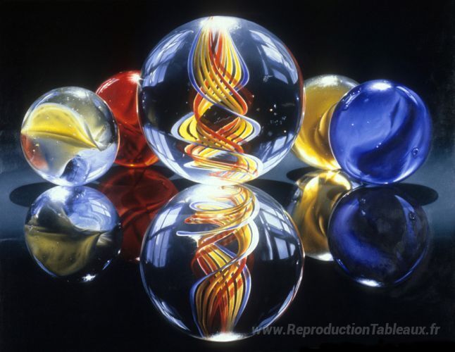 Nous vous proposons une reproduction artisanale sur toile du célèbre tableau 'Billes vii' de Charles Bell, provenant du Musée de la Reproduction.
