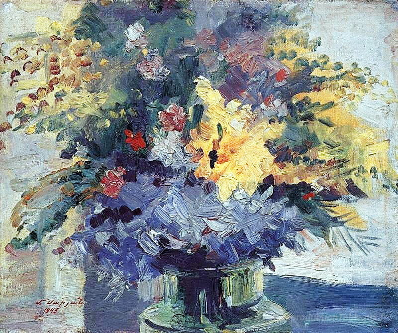 Nous vous proposons une reproduction artisanale sur toile du célèbre tableau 'Bouquet de fleurs' de Martiros Saryan, provenant du Musée de la Reproduction.