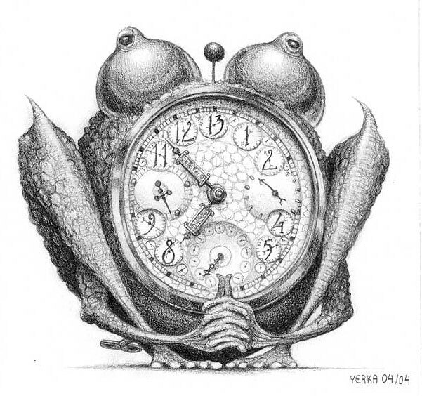 Nous vous proposons une reproduction artisanale sur toile du célèbre tableau 'Calendrier' de Jacek Yerka, provenant du Musée de la Reproduction.