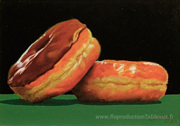 Nous vous proposons une reproduction artisanale sur toile du célèbre tableau 'Chocolat maigre' de Ralph Goings, provenant du Musée de la Reproduction.