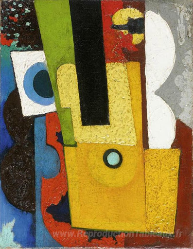 Nous vous proposons une reproduction artisanale sur toile du célèbre tableau 'Composition avec guitare' de Amadeo de Souza-Cardoso, provenant du Musée de la Reproduction.