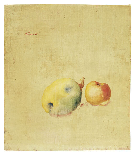 Nous vous proposons une reproduction artisanale sur toile du célèbre tableau 'Cotogna e mela - 28.12.41' de Julius Bissier, provenant du Musée de la Reproduction.