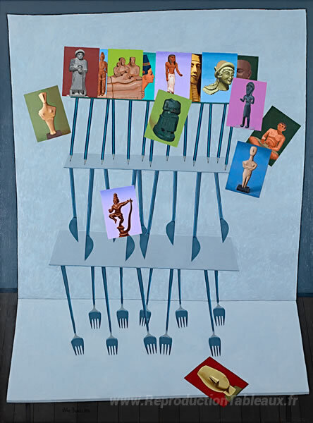 Nous vous proposons une reproduction artisanale sur toile du célèbre tableau 'Des souvenirs' de John Brack, provenant du Musée de la Reproduction.