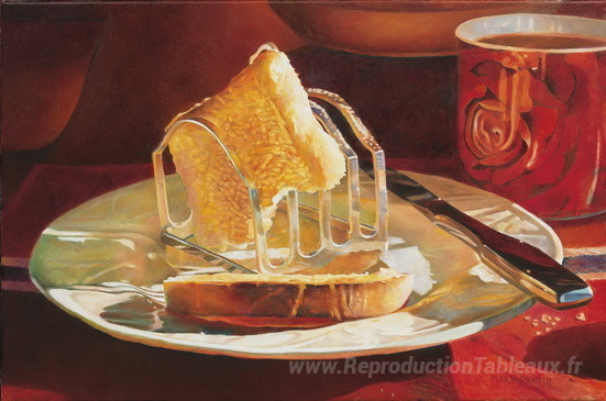 Nous vous proposons une reproduction artisanale sur toile du célèbre tableau 'Entre l'obscurité et la lumière du jour' de Mary Pratt, provenant du Musée de la Reproduction.