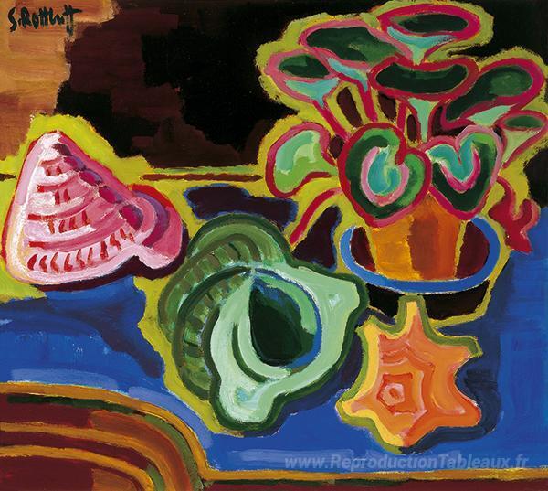 Nous vous proposons une reproduction artisanale sur toile du célèbre tableau 'Escargots de mer' de Karl Schmidt-Rottluff, provenant du Musée de la Reproduction.