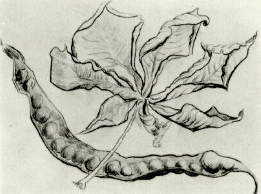 Nous vous proposons une reproduction artisanale sur toile du célèbre tableau 'Feuille morte et gousse' de Vincent van Gogh, provenant du Musée de la Reproduction.