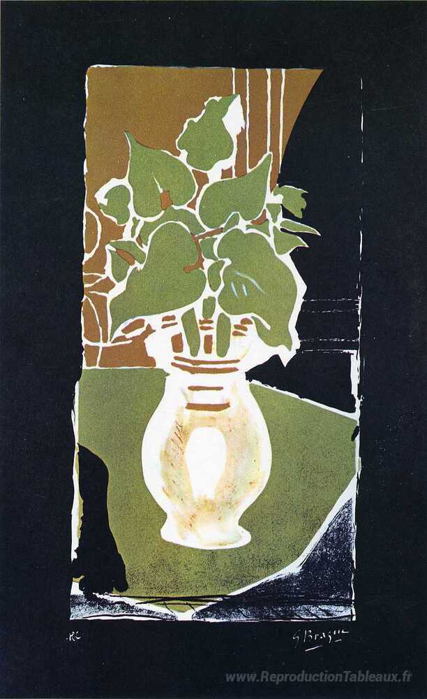 Nous vous proposons une reproduction artisanale sur toile du célèbre tableau 'Feuilles en couleur de lumière' de Georges Braque, provenant du Musée de la Reproduction.