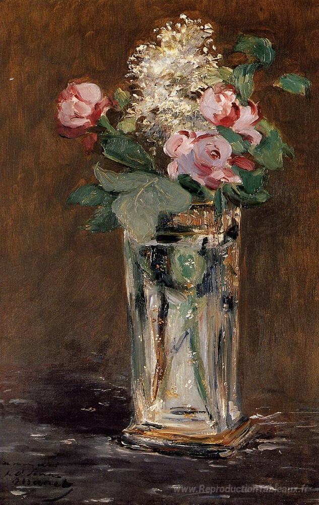 Nous vous proposons une reproduction artisanale sur toile du célèbre tableau 'Fleurs dans un vase en cristal' de Edouard Manet, provenant du Musée de la Reproduction.