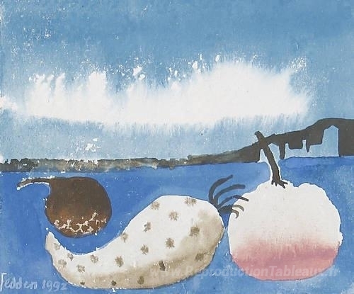 Nous vous proposons une reproduction artisanale sur toile du célèbre tableau 'Fruit par le rivage' de Mary Fedden, provenant du Musée de la Reproduction.