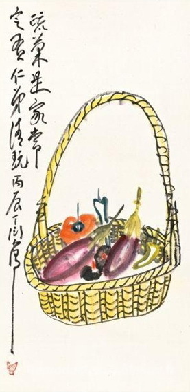 Nous vous proposons une reproduction artisanale sur toile du célèbre tableau 'Fruits et légumes' de Ding Yanyong, provenant du Musée de la Reproduction.