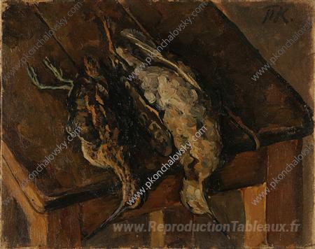 Nous vous proposons une reproduction artisanale sur toile du célèbre tableau 'Grouse (Snipe et Ruff)' de Pyotr Konchalovsky, provenant du Musée de la Reproduction.