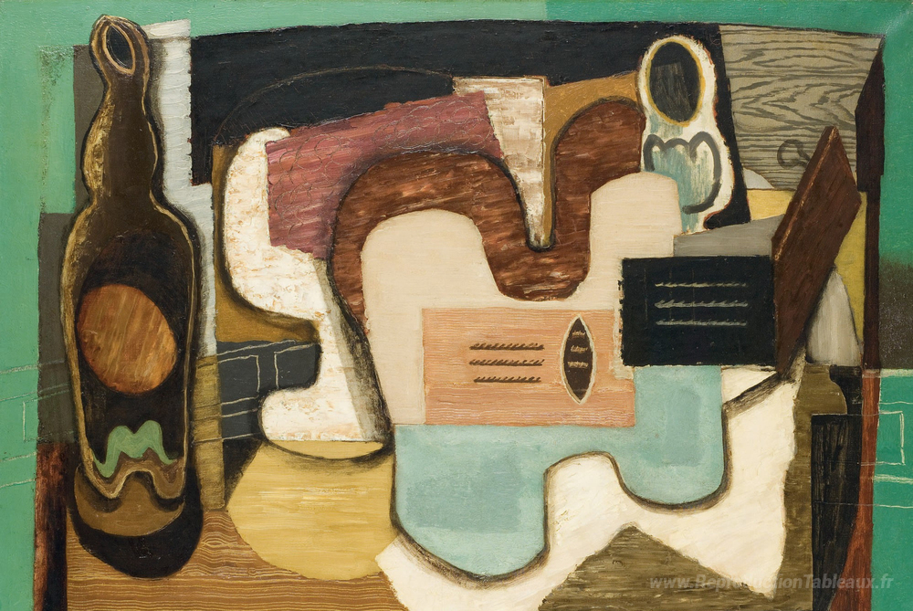 Nous vous proposons une reproduction artisanale sur toile du célèbre tableau 'La cithare' de Louis Marcoussis, provenant du Musée de la Reproduction.