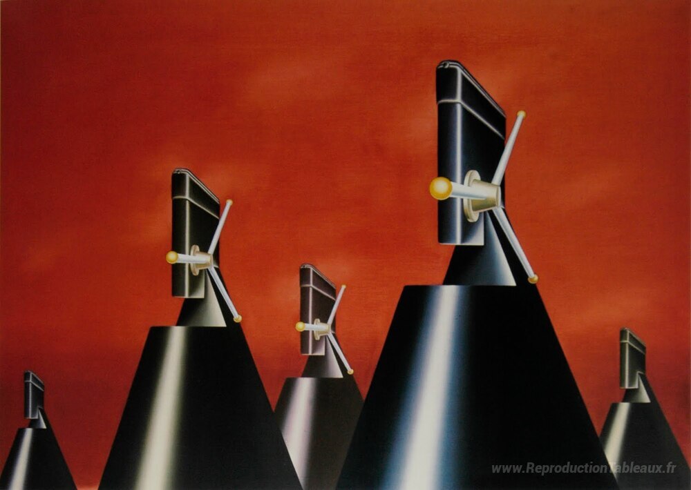 Nous vous proposons une reproduction artisanale sur toile du célèbre tableau 'La guerre' de Konrad Klapheck, provenant du Musée de la Reproduction.