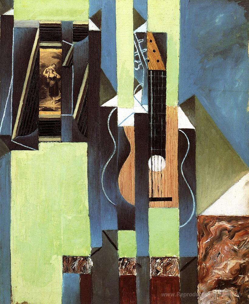 Nous vous proposons une reproduction artisanale sur toile du célèbre tableau 'La guitare' de Juan Gris, provenant du Musée de la Reproduction.