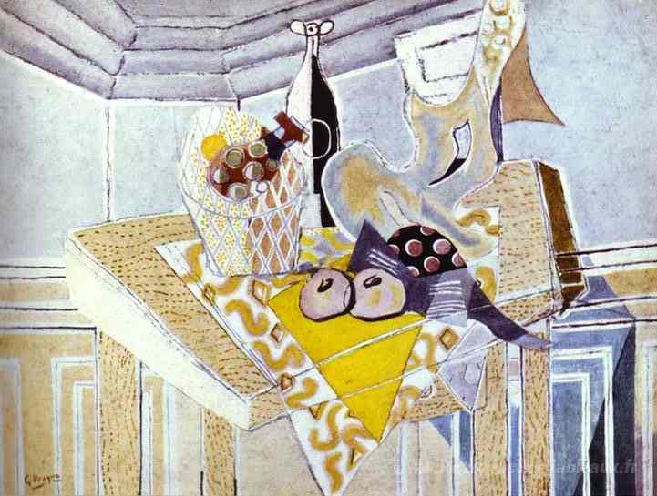 Nous vous proposons une reproduction artisanale sur toile du célèbre tableau 'La serviette jaune' de Georges Braque, provenant du Musée de la Reproduction.