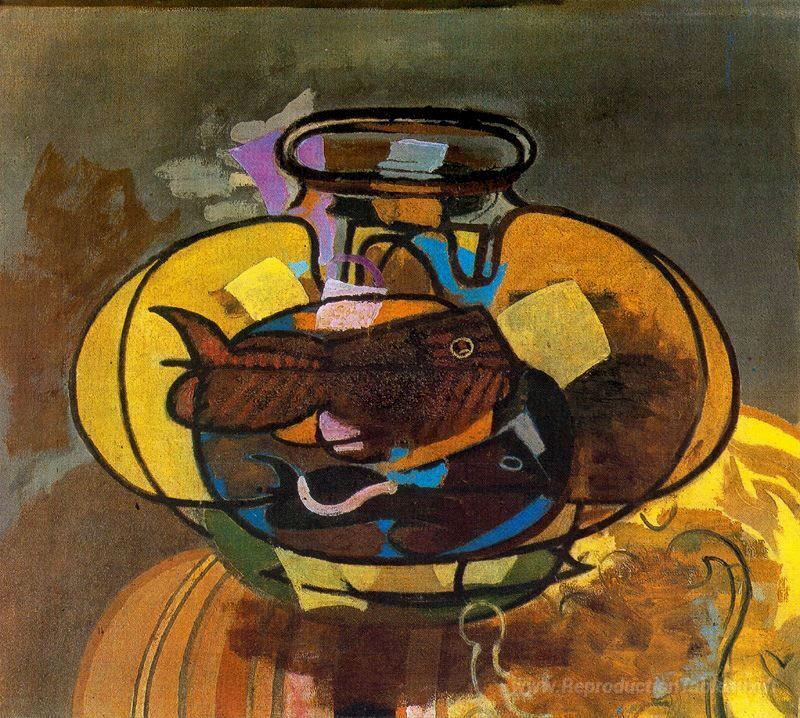 Nous vous proposons une reproduction artisanale sur toile du célèbre tableau 'L'aquarium' de Georges Braque, provenant du Musée de la Reproduction.
