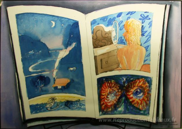 Nous vous proposons une reproduction artisanale sur toile du célèbre tableau 'Le livre' de Charles Blackman, provenant du Musée de la Reproduction.