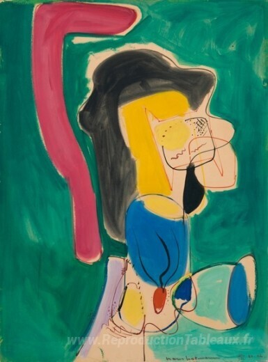 Nous vous proposons une reproduction artisanale sur toile du célèbre tableau 'Le mannequin' de Hans Hofmann, provenant du Musée de la Reproduction.