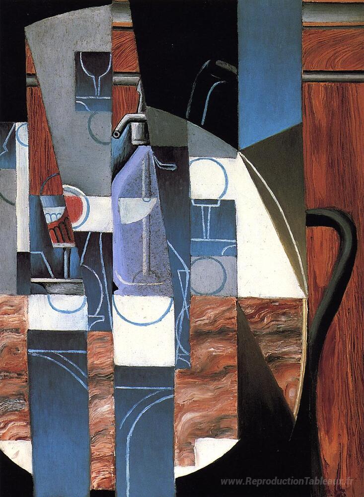 Nous vous proposons une reproduction artisanale sur toile du célèbre tableau 'Le siphon' de Juan Gris, provenant du Musée de la Reproduction.