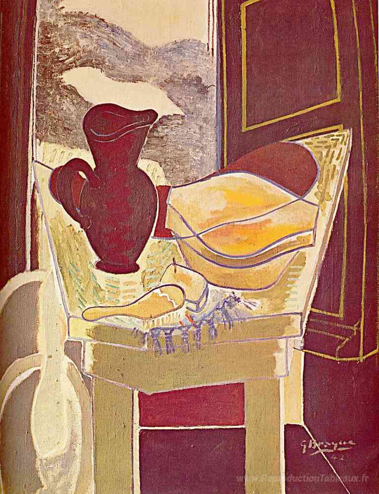 Nous vous proposons une reproduction artisanale sur toile du célèbre tableau 'Le stand de lavage' de Georges Braque, provenant du Musée de la Reproduction.