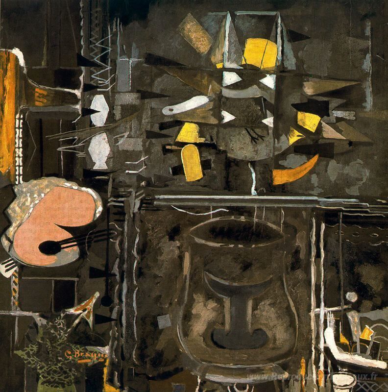 Nous vous proposons une reproduction artisanale sur toile du célèbre tableau 'Le studio (ix)' de Georges Braque, provenant du Musée de la Reproduction.