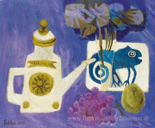 Bienvenue sur notre plateforme dédiée à la reproduction d’œuvres d’art, où nous célébrons des artistes tels que Mary Fedden. Connue pour son style distinctif et ses compositions vibrantes, Mary Fedden a su capturer la beauté éphémère du quotidien à travers sa peinture à l'huile, notamment avec son œuvre emblématique intitulée L'huile peut. Son approche singulière fait dialoguer couleur et forme, donnant vie à des scènes délicates qui apportent une touche de poésie à tout espace.