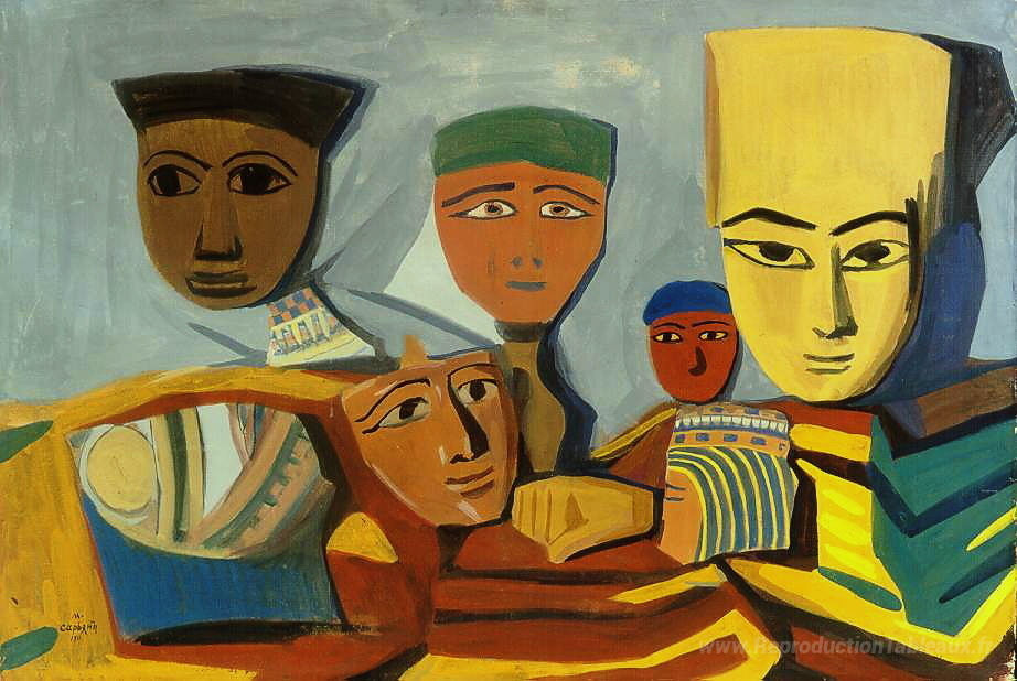 Nous vous proposons une reproduction artisanale sur toile du célèbre tableau 'Masques égyptiens' de Martiros Saryan, provenant du Musée de la Reproduction.