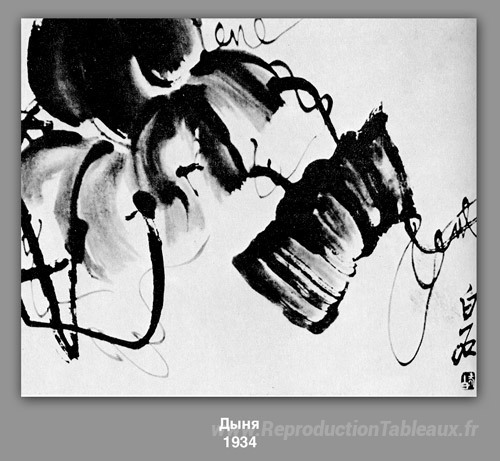 Nous vous proposons une reproduction artisanale sur toile du célèbre tableau 'Melon' de Qi Baishi, provenant du Musée de la Reproduction.