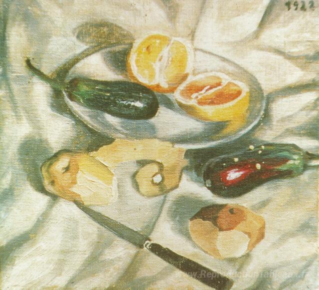 Nous vous proposons une reproduction artisanale sur toile du célèbre tableau 'Nature morte avec Aubergines' de Salvador Dali, provenant du Musée de la Reproduction.