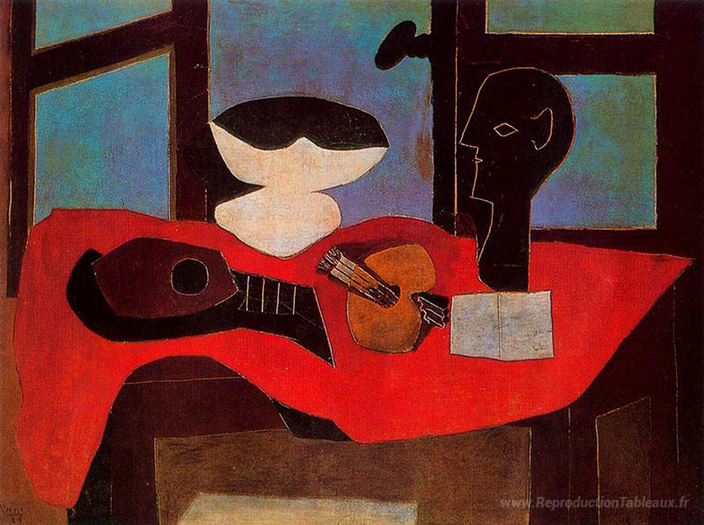 Nous vous proposons une reproduction artisanale sur toile du célèbre tableau 'Nature morte avec buste et palette' de Pablo Picasso, provenant du Musée de la Reproduction.