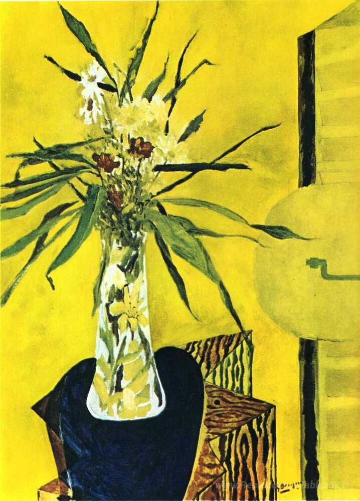 Nous vous proposons une reproduction artisanale sur toile du célèbre tableau 'Nature morte avec des fleurs' de Georges Braque, provenant du Musée de la Reproduction.
