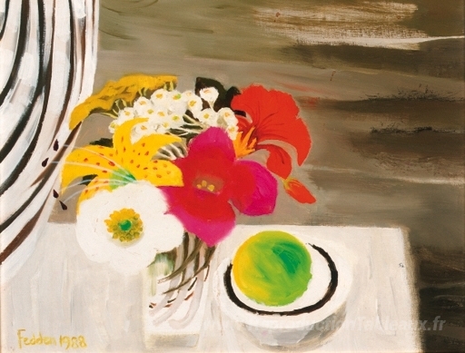 Bienvenue dans notre galerie dédiée à la beauté intemporelle des peintures à l'huile, où chaque œuvre est une invitation à explorer l'univers fascinant des artistes renommés. Parmi nos pièces phares, la Nature morte avec des fruits et des fleurs de l'artiste britannique Mary Fedden se distingue par sa luminosité et sa fraîcheur. Fedden, maîtresse de la composition, utilise des couleurs vives et des formes organiques pour capturer l'essence de la nature, alliant harmonie et sophistication.