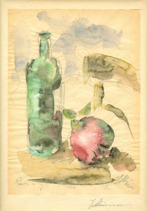 Nous vous proposons une reproduction artisanale sur toile du célèbre tableau 'Nature morte avec grenade, bouteille et chaise' de George Bouzianis, provenant du Musée de la Reproduction.