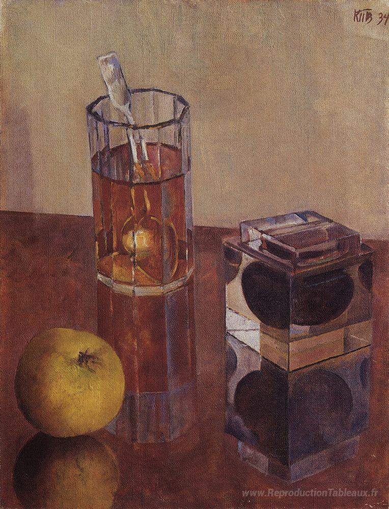 Nous vous proposons une reproduction artisanale sur toile du célèbre tableau 'Nature morte avec Inkwell' de Kuzma Petrov-Vodkin, provenant du Musée de la Reproduction.