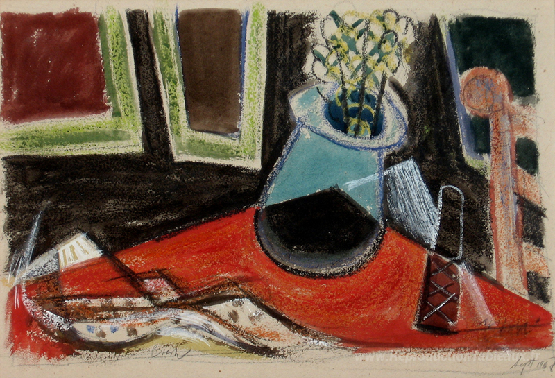 Bienvenue dans notre galerie dédiée aux chefs-d'œuvre de la peinture à l'huile, où l'art se marie à votre espace de vie. Parmi nos œuvres emblématiques, nous vous présentons Nature morte avec un couteau de l'artiste canadien Jack Bush. Ce tableau captivant incarne l'esprit moderne du 20ème siècle, mêlant abstraction et représentation pour créer une harmonie visuelle fascinante.