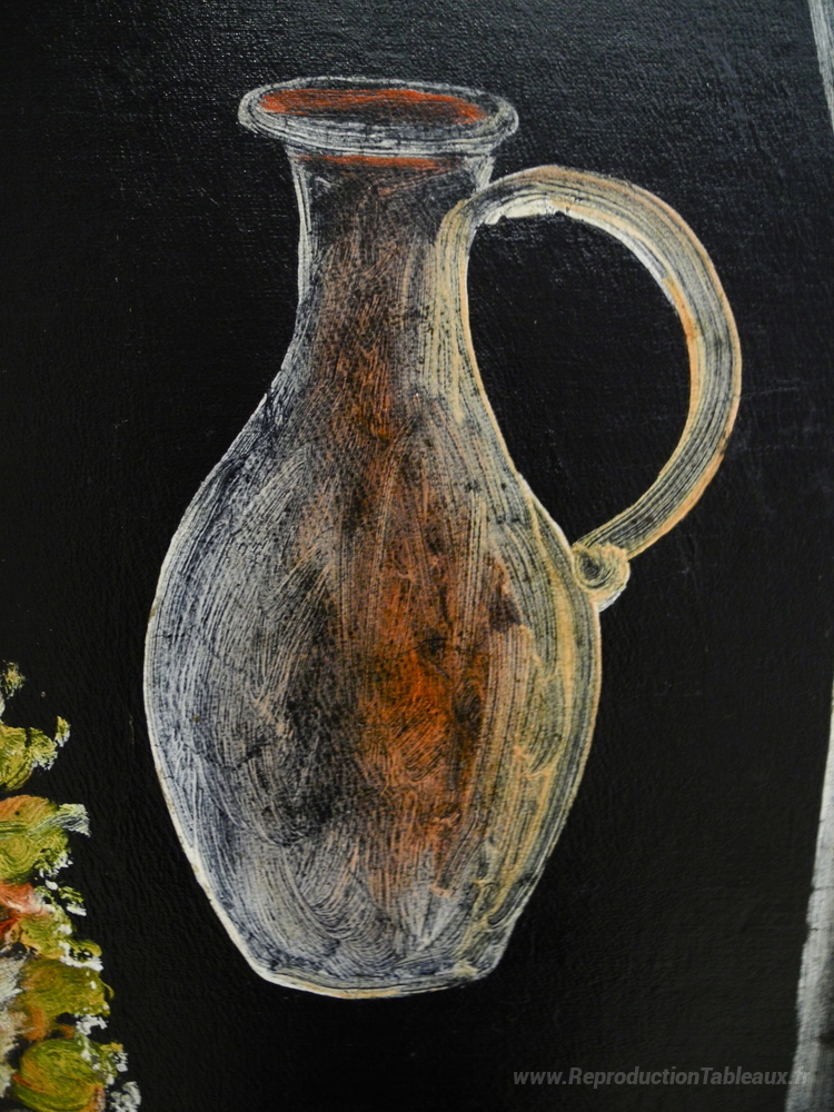 Nous vous proposons une reproduction artisanale sur toile du célèbre tableau 'Nature morte (détail)' de Niko Pirosmani, provenant du Musée de la Reproduction.