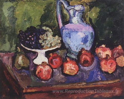 Nous vous proposons une reproduction artisanale sur toile du célèbre tableau 'Nature morte. Des fruits.' de Pyotr Konchalovsky, provenant du Musée de la Reproduction.