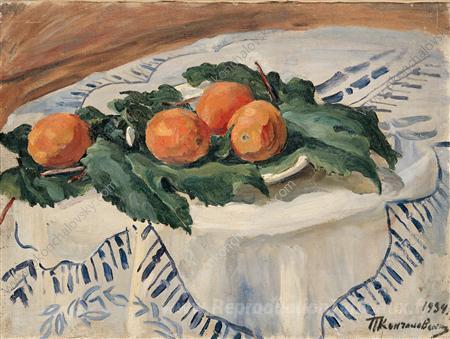 Nous vous proposons une reproduction artisanale sur toile du célèbre tableau 'Nature morte. Des oranges.' de Pyotr Konchalovsky, provenant du Musée de la Reproduction.