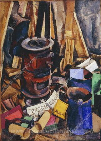 Nous vous proposons une reproduction artisanale sur toile du célèbre tableau 'Nature morte. Le poêle.' de Pyotr Konchalovsky, provenant du Musée de la Reproduction.
