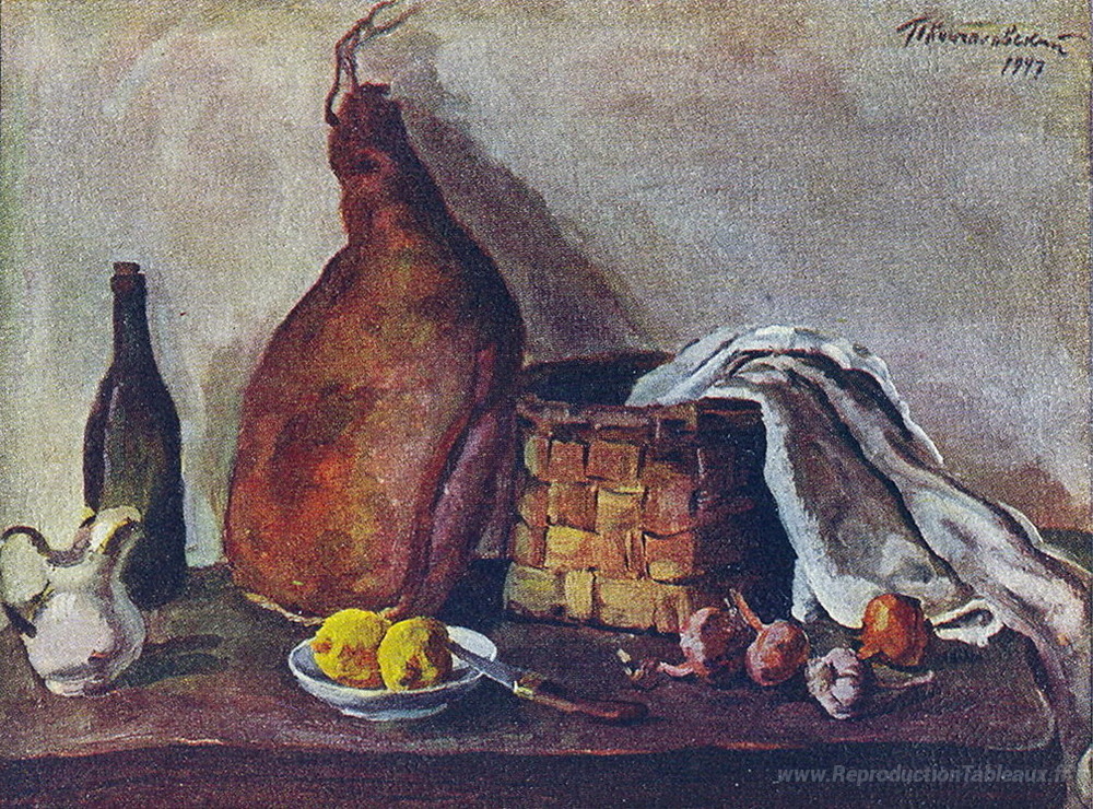 Nous vous proposons une reproduction artisanale sur toile du célèbre tableau 'Nature morte' de Pyotr Konchalovsky, provenant du Musée de la Reproduction.