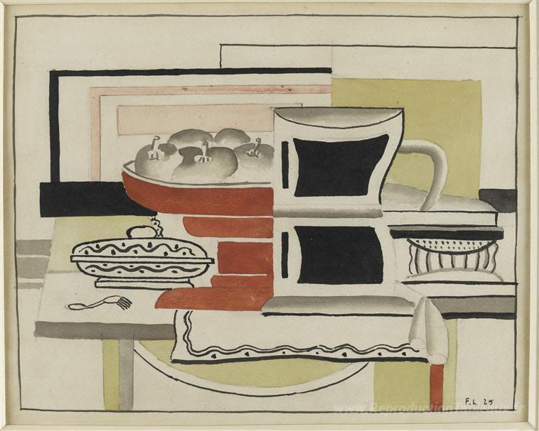 Nous vous proposons une reproduction artisanale sur toile du célèbre tableau 'Nature morte' de Fernand Leger, provenant du Musée de la Reproduction.