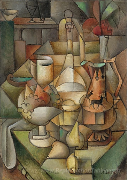 Nous vous proposons une reproduction artisanale sur toile du célèbre tableau 'Nature morte' de Jean Metzinger, provenant du Musée de la Reproduction.