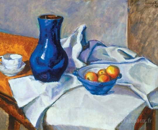 Nous vous proposons une reproduction artisanale sur toile du célèbre tableau 'Nature morte' de Lajos Tihanyi, provenant du Musée de la Reproduction.