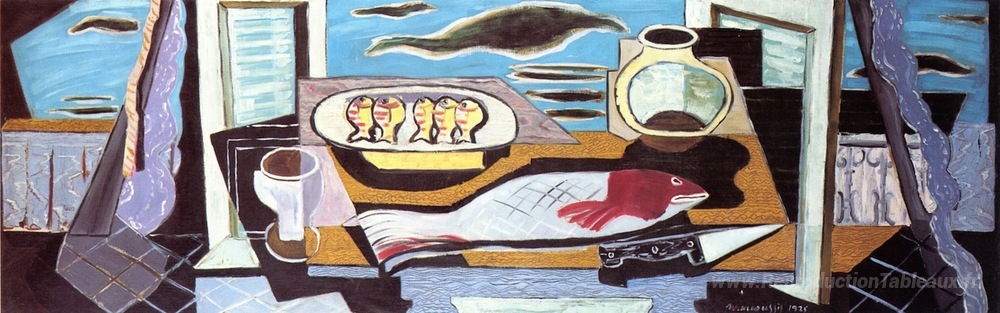 Nous vous proposons une reproduction artisanale sur toile du célèbre tableau 'Nature morte' de Louis Marcoussis, provenant du Musée de la Reproduction.