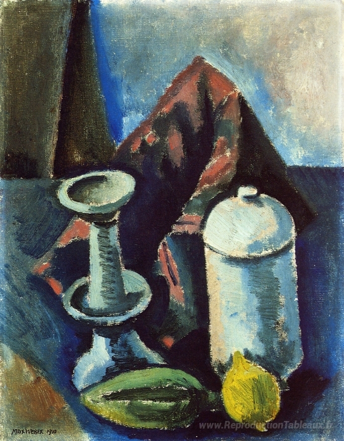Nous vous proposons une reproduction artisanale sur toile du célèbre tableau 'Nature morte' de Max Weber, provenant du Musée de la Reproduction.