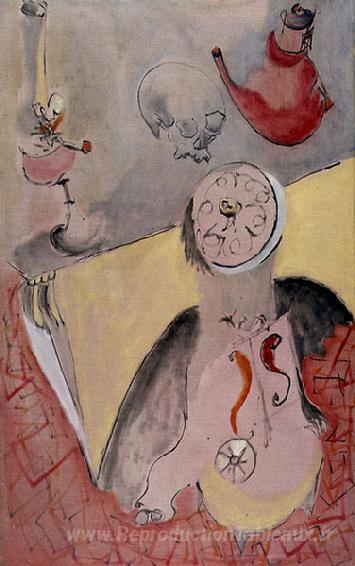 Nous vous proposons une reproduction artisanale sur toile du célèbre tableau 'Nature morte' de Norman Bluhm, provenant du Musée de la Reproduction.