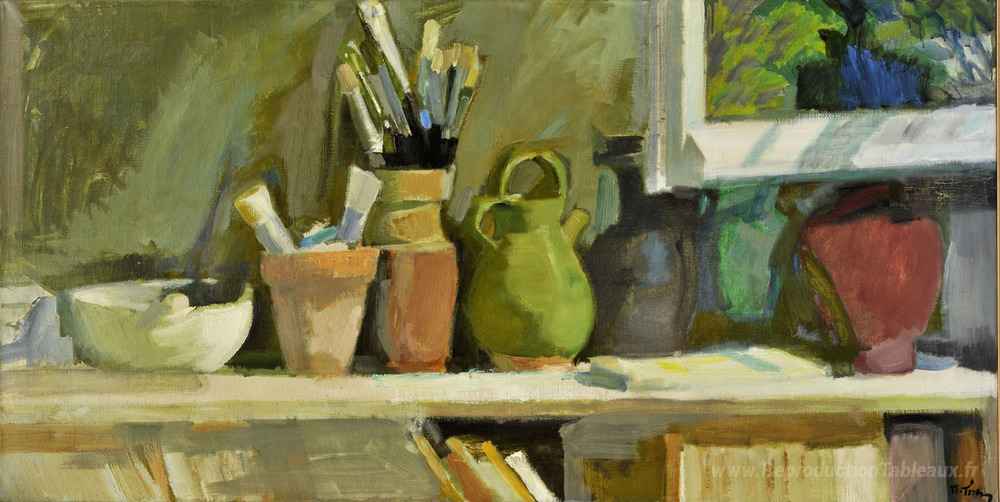 Nous vous proposons une reproduction artisanale sur toile du célèbre tableau 'Nature morte' de Panayiotis Tetsis, provenant du Musée de la Reproduction.