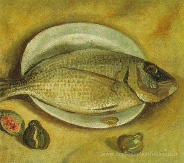 Nous vous proposons une reproduction artisanale sur toile du célèbre tableau 'Nature morte - poisson' de Salvador Dali, provenant du Musée de la Reproduction.